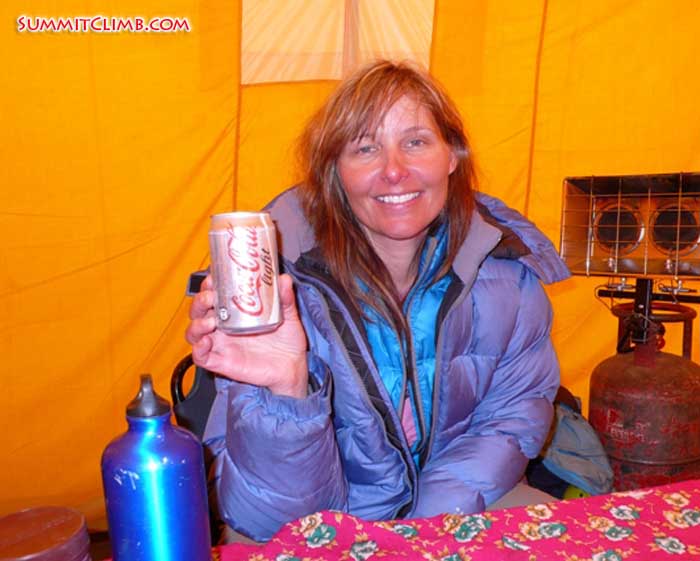Right now it’s snowing lightly with a light wind but overall the weather conditions are pretty good in our camp. I can’t say what the conditions are like on the summit but we have heard that there is quite a bit of snow that has accumulated up there and we’ll tell you more when we get there. Thanks for following and goodbye. back to top