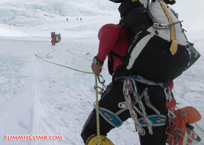 We saw the rope fixing team going up the Lhotse face today. It’s getting windy up there ahead of us so we’re not too sure how much progress we’ll make and we’re watching the weather forecast very carefully now. We’re hopeful that our Lhotse team can get to the top as soon as possible with all due safety with the fixed slides.