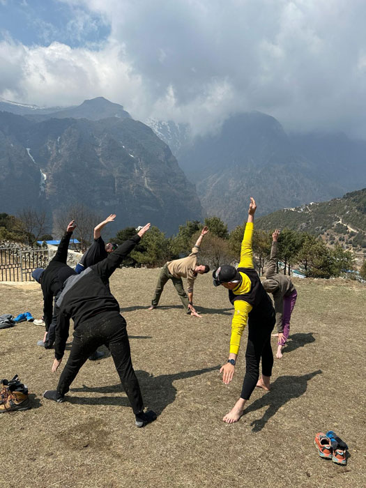 On April 11th, David here, currently seated with the team at the Hilltop Lodge, enjoying fantastic views overlooking Namche Bazaar. Luckily, we avoided the rain during our trek up here. Tomorrow, we're planning a rest day with a brief acclimatization session.