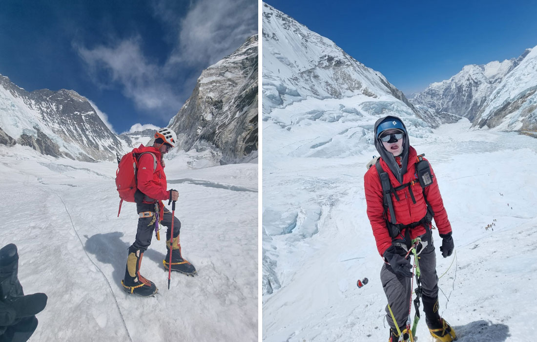 Caption : Pemba Sherpa during Ice fall climb. Member during Icefall climb