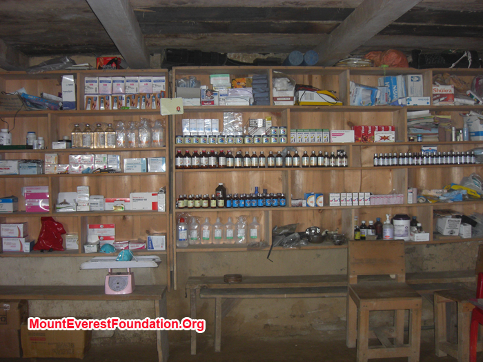 Temporary built Patle Health Center. Medicine inside health clinic donate by Mount Everest Foundation.