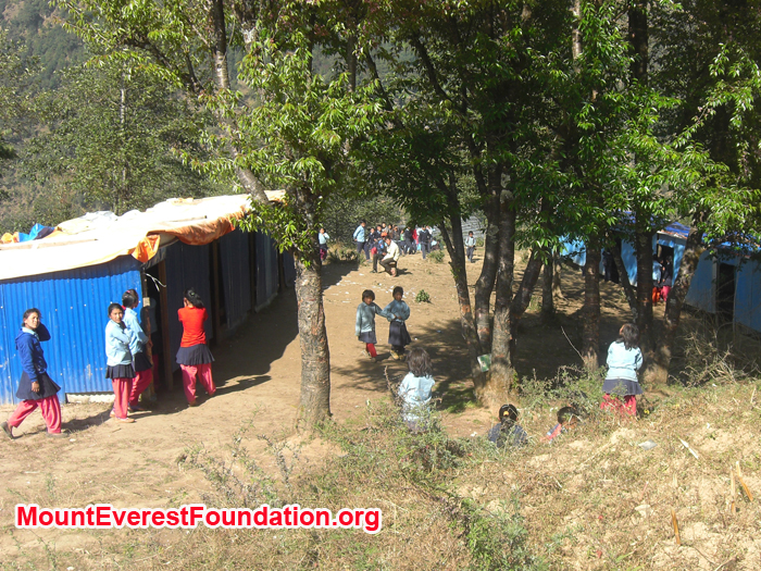 Sherpa Dance performance. Chhermading school class are taken in Tin class room due to damage of main buiding by earthquake.
