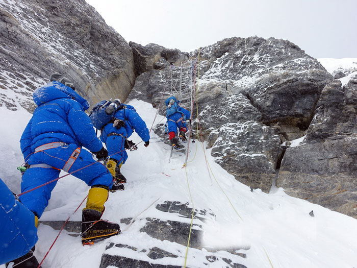 Any rescue on the mountain is likely to involve multiple people and potentially multiple organisations such additional Sherpas, insurance companies, helicopter companies and logistics support from Kathmandu. Any leader must know how to mobilise these resources quickly to maximise the chance of a successful rescue. The leader must also be prepared to be the immediate rescuer, his or her experience may be what is needed to coach a struggling member to safety.